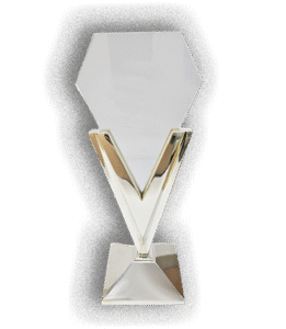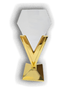 Trofeo de acrílico con base de madera y chapa dorada/plateada/bronce