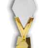 Trofeo de acrílico con base de madera y chapa dorada/plateada/bronce